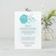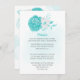Cartão de inclusão de detalhes de casamento botânico com flores brancas e turquesa românticas. Os detalhes cintilantes são simulados.