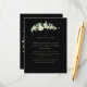 Um cartão de encerramento de recepção de casamento preto liso apresentando um caule elegante de nevascas pintadas à mão e eucalipto na frente e uma coroa na parte de trás do cartão. Todo o texto é totalmente editável e os pontos espalhados na frente e atrás podem ser excluídos antes de encomendar, se preferir. Este cartão está disponível com desenhos botânicos alternativos, em formato paisagem e em cores diferentes. Por favor, visualize a Coleção na minha loja para ver todas as opções e itens coordenados.