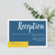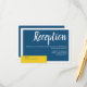 Cartão de recinto de recepção de casamento minimalista e contemporâneo com um layout moderno em azul e amarelo.