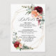 Cartão de detalhes de casamento Burgundy Peach Burnt Orange com buquê elegante de flores de rosa cor burgundy, vermelho, Marsala, grená, pêssego, rosa salmão, coral e botão de flores cor de blush e folhas de eucalipto verde-sage. Por favor, entre em contato comigo para obter ajuda na personalização ou se precisar de qualquer outro produto com este design.