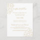 O cartão de informações de recepção de casamento de beisebol dourado inclui linha do tempo de eventos, direções e acomodações e informações do site, com muito espaço aberto para texto adicional.