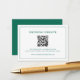 Simples Cartão de Gabinete de Site de Casamento com um design moderno, mas elegante, com seu Código QR personalizado junto com sua mensagem cercada por uma borda fina. Todo texto é um tom de joia verde esmeralda sobre um fundo branco e pode ser alterado para qualquer cor que você desejar clicando no botão "personalizar". Um cartão de gabinete de casamento chic e na moda que vai bem com qualquer estilo de suíte de convite para casamento.