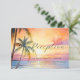 A design de casamento do tema da praia mostra o céu ensolarado da noite, palmeiras, oceano azul e praia arenosa. Personalize com seu próprio texto. Use a ferramenta Editar Design para alterar o tamanho, o estilo ou a cor da fonte. Veja toda a coleção de convites, bolsas de favoritos, adesivos, cartões de agradecimento, banner e muito mais...