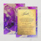 Cartão de cerimônia de casamento da folha de ouro Elegante com sotaque de joias ricas em ametista roxo, magenta rosa-sapphire e latão derretido. Bonita e intrincada com cores como cristais agados e geodoros. Sentar no topo da arte é uma modelo fácil de editar; à qual os detalhes do casamento podem ser adicionados. Cartão de Invólucro Púrpura Rosa-Cor-de-Ouro. Convites formais e acessórios de casamento com abstrato original da artista internacional Pauline Benjes.