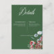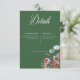 Celebre o seu novo começo com a beleza botânica do inverno. O design deste cartão de detalhes de casamento apresenta uma moldura casual de pinheiro, eucalipto e frutos em tons de sage, verde pinho e vermelho vintage rico em um fundo verde escuro. Elegante e perfeito para a estação. Criado por Simply Farmhouse Press.