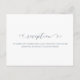Cartão de recepção de casamento simples e empoeirado, azul e branco, com um belo roteiro de caligrafia.