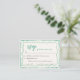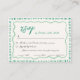 Esta placa de resposta de gabinete RSVP de casamento ilustrada com estilo desenhado à mão da tendência apresenta uma onda cristalina e um arco peculiar. O design de rabisco branco inclui fontes manuscritas. Cor verde-sábio para o clássico e moderno papel de carta de casamento.