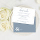 Esta Carta de Detalhes do Casamento Azul Branco e Dusty, Projetada com Script de Caligrafia Moderno e Elegante com Fronteira, e inclui o nome da noiva e noiva no verso.