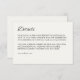 Cartão minimalista de "detalhes" de casamento projetado para coordenar com nossa coleção de artigos de papelaria "moderna e minimalista". Apresenta sotaques elegantemente escritos e tipografia nítida e limpa para detalhes essenciais, criando uma estética impressionante, mas subestimada. Disponível em uma seleção curada de cores de fundo contemporâneas. Misturar cores e combinar com outros produtos de papelaria para criar a sua suíte perfeita de papelaria de casamento. Totalmente personalizável e fácil de personalizar, esse conjunto de placas de gabinete é perfeito para aqueles que valorizam o design elegante e a sofisticação sem esforço para seu dia especial. Veja o resto da coleção em nossa loja. ✦ ✦ ✦ Entre em contato conosco para obter assistência na personalização ou personalização para ajustado de seus desejos individuais. Ou, para ajudar a personalizar ou criar produtos de papelaria de casamento relacionados.