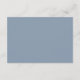 Este elegante cartão de detalhes do casamento moderno contém texto azul empoeirado sobre fundo branco. O título aparece em um simples script de escrita manual moderno, com texto personalizável abaixo na fonte sans serif. O verso é azul sólido empoeirado.