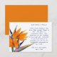 Cartões de mensagem de poço dos desejos para um casamento. Design de pássaro do paraíso laranja e texto impresso azul em cartões pequenos horizontais. Use a mensagem de exemplo ou mude de acordo com as suas necessidades. Perfeito para incluir no chá de panela e/ou convites de casamento. Uma maneira elegante de pedir presentes em dinheiro aos convidados. O verso é laranja sólido. Mostrado em papel ecru com mais opções.