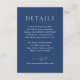 Cartão De Informações Casamento Elegante Azul-Marinho Clássico