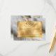 Um cartão de envelope de casamento com um design marmorizado dourado falso, cinza e branco.