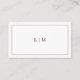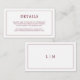 Simples cartão de cerimônia de núpcias com um design moderno, mas elegante, com seus detalhes cercados por uma fina borda e seu monograma no verso. Todos os elementos de design estão em burgundy e podem ser alterados na ferramenta de edição de design. Um design chic e na moda que é excelente para um casal minimalista. Use essas placas de gabinete para fornecer instruções e outros detalhes importantes que seus convidados possam precisar conhecer, como acomodações de hotel, estacionamento, informações de vaivém, etc.