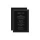 Cartão de cerimônia de núpcias preto no estilo clássico, com um design simples e mínimo com seus detalhes cercados por uma dupla borda. As fontes se alternam entre um script elegante, um serif tradicional e fontes sans serif minimalistas. Este cartão é excelente para um casamento formal.