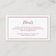 Simples cartão de cerimônias de casamento burgundy com "Detalhes" em uma letra elegante escrita à mão juntamente com suas informações adicionais cercadas por uma borda fina. O layout clássico e tradicional faz com que este cartão de gabinete seja excelente para um convite formal de casamento. O tamanho pequeno é excelente se você tiver um site de casamento ou você pode escolher um tamanho maior se tiver mais informações para compartilhar com seus convidados.