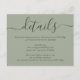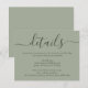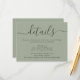 Forneça aos seus convidados detalhes importantes com este cartão de inclusão de casamento em verde sage moderno com uma fonte de letra moderna. Itens correspondentes disponíveis.