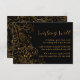 Cartão De Informações Casamento Floral Elegante Dourado e Negro Desejand