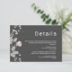 Cartão De Informações Casamento Floral Rosa Elegante e Cinza Escuro