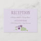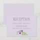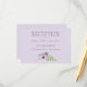 Cartões de recepção de casamento cônicos russos apresentam um sotaque floral de flores lilás, lavandas, violetas e roxas de ameixa e folhas botânicas verdes com aspecto desenhado à mão.