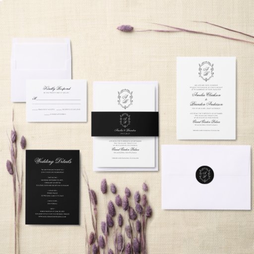 Elegant Black & White Floral Crest Wedding SuiteCriado por Jessica Senarlo