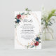 O cartão de detalhes do casamento floral, elegante e moderno, geométrico e geométrico romântico, apresenta uma bela burgundy / marsala, cor-de-rosa-pincel, cor de água azul-marinho, com folhagem correspondente sobre fundo azul-marinho e estrutura dourada. Perfeito para um casamento no outono/no meio do verão. Por favor, encontre mais designs e variações na minha loja de "blisswedingpaperie". E sinta-se à vontade para contactar-me para mais personalizações ou itens correspondentes