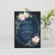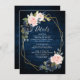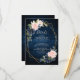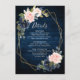 Cartão de detalhes de casamento floral geométrico azul marinho escuro com buquê elegante de azul marinho, azul real, branco, rosa bege e folhas de eucalipto verde salvia e moldura geométrica neutra com brilho elegante. Por favor, entre em contato comigo para qualquer ajuda na personalização ou se você precisar de qualquer outro produto com este design.