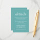 Cartão De Informações Casamento Mínimo de Teal de Caribe Simplicity 2 Ve