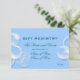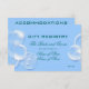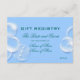 Bolhas de fantasia abraçam as bordas deste cartão de registro de presentes e acomodações que tem um fundo azul pastel claro e uma palmeira em "azul gelo". Existem modelos para você personalizar o texto. IDEAL PARA - Eventos corporativos e formais de inverno ou eventos, reuniões, festas e celebrações com tema de "praia".