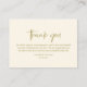 Esta é a escrita simples e moderna, no esquema clássico de ouro, obrigado de casamento, Cartão de gabinete. Você pode mudar as cores da fonte e adicionar suas notas/ detalhes de agradecimento ao casamento. #TeeshaDerrick