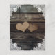 Forneça aos seus hóspedes detalhes importantes com este cartão de cerimônias de casamento rústico com corações de burlap em um fundo de madeira de celeiro adornado com um elegante local floral branco e luzes de cordas. Dois corações e um lugar floral nas costas. Itens correspondentes disponíveis.