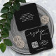 Essas modernas placas de gabinete preto e branco são uma maneira fácil para seus convidados RSVP em seu site. Para criar o seu próprio Web site Código QR, basta introduzir o seu URL na caixa de texto ao personalizar os seus cartões.