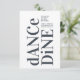 Essa tipografia ousada, ultra moderna, fantástica, limpa, bem projetada, com um cartão de recepção ousado mínimo, mas muito divertido, para convidar seus convidados para a recepção ou janto de ensaio em estilo clássico absoluto e colocação de texto em azul, cinza e branco para estilo minimalista, no entanto é personalizável para outras cores e faz parte de um conjunto exclusivo e coleção de Phrosne Ras Design. Isso seria excelente para aqueles que planejavam um evento preto e branco divertido, com este cartão de receptáculo sendo ousado e inspirado por pessoas divertidas que amam uma boa festa e não se importam de se desviar da tradição.