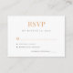 Cartão de cerimônia de resposta ao casamento simples e elegante rsvp apresentando um guião de tipografia laranja cinzenta e mínima queimada de cobre. ++++++++++++ Fácil de personalizar com seus detalhes! Adequado para qualquer casamento temático elegante moderno.