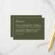 Cartão De Informações Casamento Verde do Exército de Manuscrito Minimali