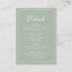 Cartão de cerimônia de casamento verde de sábio do estilo tradicional com um design simples com "Detalhes" em um dentro de caligrafia elegante de uma fronteira fina. O modelo permite que você compartilhe informações importantes sobre seu dia especial. Este design clássico é perfeito para um casamento formal.