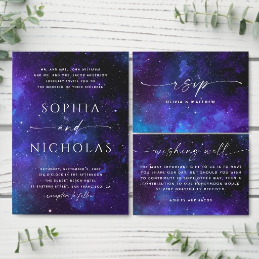 Cartão De Informações Casamentos espaciais. Estrelas noturnas. Moderno