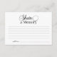 Este elegante cartão "Compartilhe uma Memória" é uma bela maneira de os hóspedes partilharem as suas histórias e memórias favoritas do seu amado. Com um design simples, mas elegante, com uma bela fonte de script, esta placa encoraja os hóspedes a anotar suas memórias favoritas para que você possa tesourar.