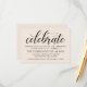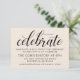 "Celebre" varre este cartão de recepção elegante com caligrafia deslumbrante, estabelecendo um tom alegre para as suas festividades pós-cerimônia. O marfim quente combina com detalhes serif refinados para uma aparência que se coordena lindamente com o seu conjunto de casamento em creme. Todo o texto é totalmente editável — personalize o local, endereço, hora e texto para compartilhar os detalhes da sua celebração.