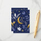 O encantador design Celestial Romance combina maravilhas celestiais com os florais românticos. Contra uma rica meia-noite, estrelas azuis, prateadas e douradas formam constelações e padrões celestes. Luas crescentes e flores estilizadas em matizes metálicos adicionam um toque de capricho e elegância. Perfeito para casamentos noturnos, este design cria uma atmosfera mágica em convites, configurações de mesa ou como pano de fundo.
