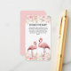 Cartão De Informações Chá de Bebê Flamingo Floral Rosa Elegante