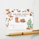 Encoste-se! Este design de aquarela. Este design apresenta cores neutras modernas em uma aplicação de aquarela. Design em impressão de vaca, chapéu de cowboy, cacto do deserto, botas de cowboy. "Um pequeno vaqueiro está a caminho"