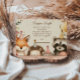 Celebre no estilo rústico da floresta com este design brincalhão com raposa, guaxinim, coelho e amigos ouriços vestindo chapéus de festas. Cercado por balões pastéis, florais e verde florestal, este tema charmoso traz uma sensação confortável e caprichosa para o seu dia especial.