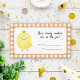 "Um pequeno frango está a caminho". Celebre com esta festa de chá de fraldas de galinha de cartoon! Pintinho bonitinho de aquarela com cara de bebê. Gaiola laranja.