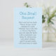 O cartão de chá de fraldas solicita um livro infantil para criar uma biblioteca para bebê em vez de um cartão tradicional. O design inclui o título "uma pequena solicitação" com texto personalizado em um esquema de cores azul para bebê e cinza que pode ser totalmente personalizado.