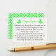 O chá de fraldas irlandês do tema "nada de presente", apenas arcos solicitam cartões de exposição para todas aquelas mulheres irlandesas grávidas, com as cores verdes tradicionais da Irlanda, com o bebê mais bonito de um chapéu alto de duende, decorado com folhas de shamrock sortudas.