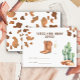 Este design apresenta cores neutras modernas em uma aplicação de aquarela. Design com estampa de vaca, taça de champanhe, cacto do deserto, botas de cowboy.