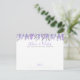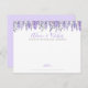 Placa de Conselhos e Desejos Florais de Lavanda de Aquarela Elegante Esta bela placa de chá de panela e de desejos apresenta delicadas flores lavandas de aquarela ao longo do topo, criando um toque brilhante e elegante. Os conselhos e desejos são escritos em textos roxos fluentes no topo (você poderia mudar para 'Palavras de Sabedoria' também), seguido de Para o futuro Sra. [Name] em uma fonte de servidor clássica. Abaixo, há muito espaço para os hóspedes escreverem seus sentidos conselhos e desejos para a futura noiva. Na parte inferior, With love, é elegantemente escrito em roxo, com uma linha por baixo para os convidados assinarem o seu nome. A parte traseira do cartão é um roxo leve e macio, complementando o design floral. Totalmente personalizável, você pode alterar as fontes, as cores e o plano de fundo para corresponder ao tema do chá de panela. Este cartão é uma adição séria e significativa a qualquer chá de panela, permitindo que os hóspedes compartilhem seu amor e sabedoria com a futura noiva.