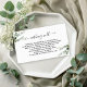 Prepare-se para ser encantado pela nossa fantástica suíte de casamento verde! Adorada com delicadas ilustrações de folhas de eucalipto e aliada a uma caligrafia ousada e elegante, esta suite é o toque perfeito para o seu casamento mágico de jardim. Se você precisar de mais itens ou tiver um pedido especial, basta falar via chat - estou aqui para ajudar a transformar seu casamento de sonho em uma bela realidade!