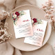Cartão De Informações Chic Burgundy Floral Greenery Gold Wedding Details